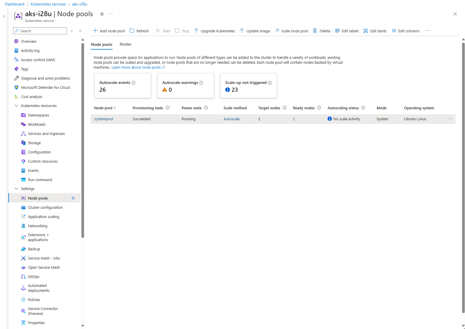 Note: You’ll notice on the Azure portal that your AKS cluster is automatically scaling to at least two nodes. This is because Cilium requires a minimum of two nodes to handle failover and redundancy, which is crucial for maintaining network stability and reliability.