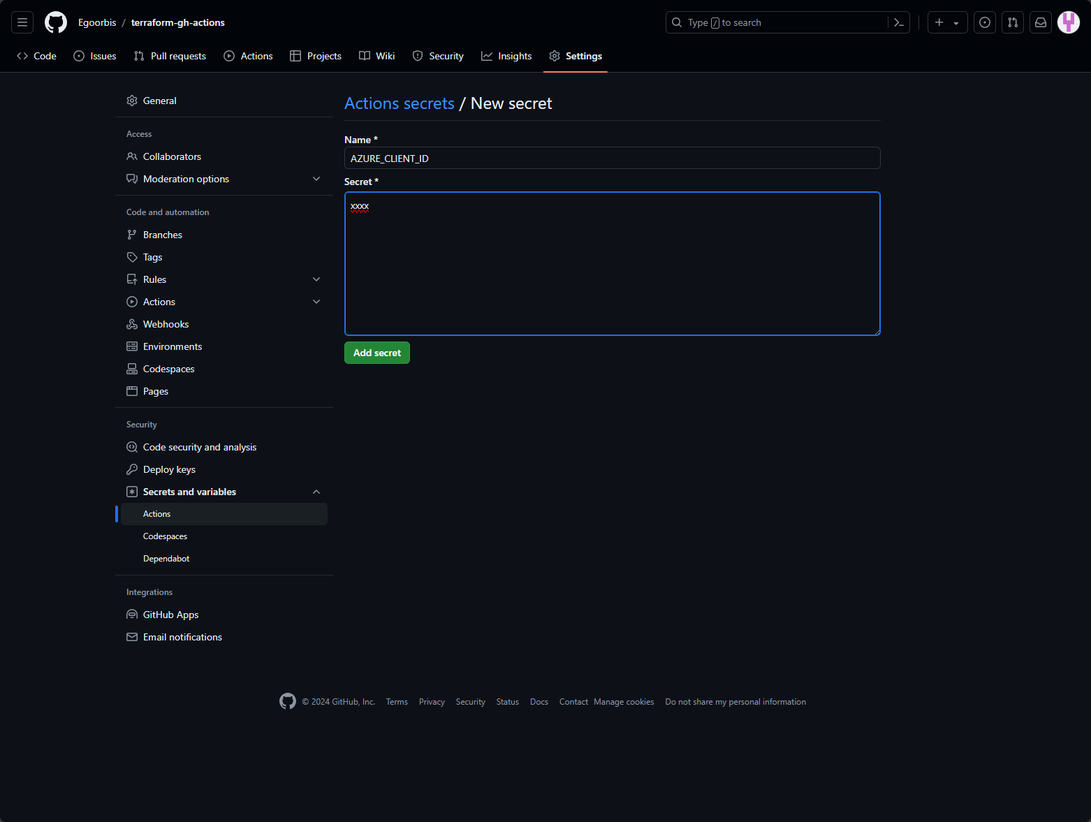 We start by setting up the GitHub repository, as we will need to use the information when we establish the trust relationship between our Entra ID tenant and GitHub by configuring the federated identity credential on the Entra application.