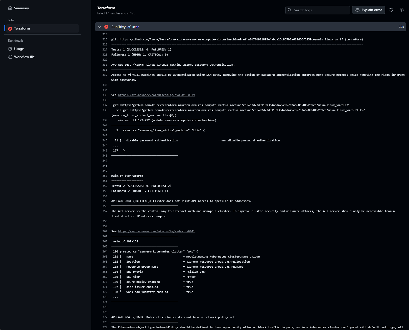 Through the implementation of Trivy and GitLeaks in a GitHub Actions workflow, we have now established robust security our Terraform deployment, encompassing both misconfiguration and secret detection.